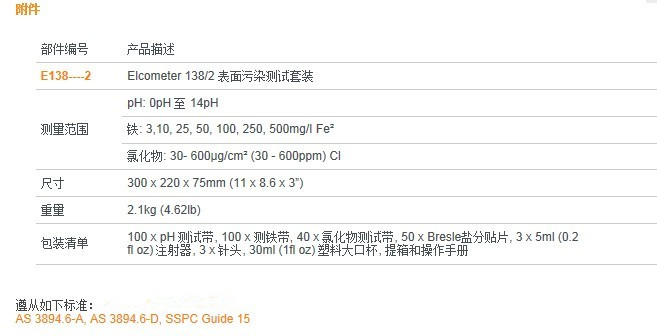 Elcometer 138/2 表面污染測(cè)試套裝給使用者提供了測(cè)試可見(jiàn)表面污染物的方法,包括: