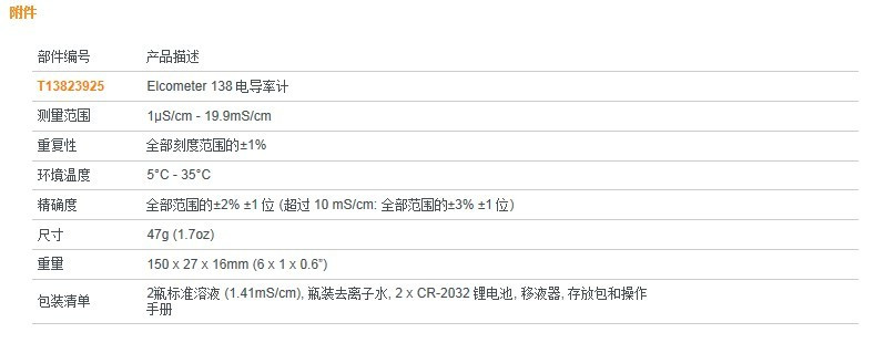 Elcometer 138 電導(dǎo)率計含一個平面的傳感器,僅需一滴樣本即可檢測溶液的電導(dǎo)率。