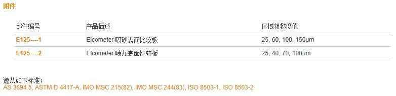 比較板極其耐用,可用來評估噴砂和噴丸表面的粗糙度情況。Elcometer125當作參考,每種比較板上有四個粗糙度等級,拿噴射表面和它們做比較。粗糙度以微米計