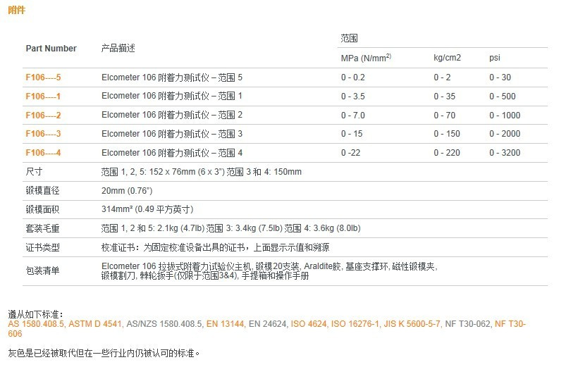 Elcometer 106附著力測試儀操作簡單攜帶方便,測量范圍廣泛。應(yīng)用范圍包括油漆或橋面噴漿,鋼鐵、鋁、混凝土上的涂層,等等。