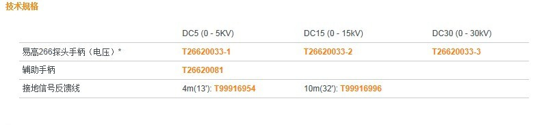 可互換的探頭手柄:, 5kV, 15kV和 and 30kV D C(直流)版本可供選擇 |