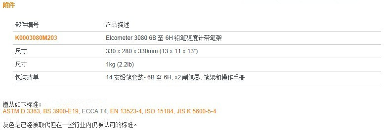 Elcometer 3080 鉛筆硬度計供有筆架和一套鉛筆共14支,范圍從6B到6H。