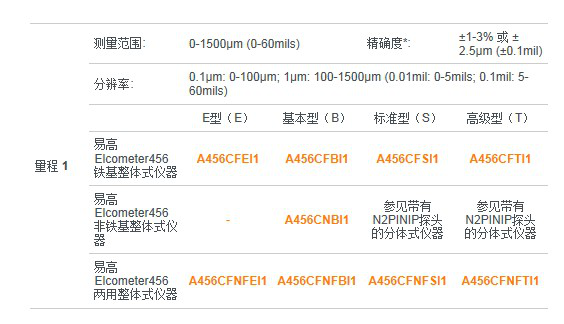 易高Elcometer456儀器分為4個類型:E型、B(基本型)、S(標(biāo)準(zhǔn)型)、T(高級型),從最初的易高456E型到現(xiàn)在的456T型,儀器功能不斷增加,易高456T型帶有記憶、字母數(shù)字組合記錄數(shù)據(jù)批次和藍(lán)牙傳輸功能。